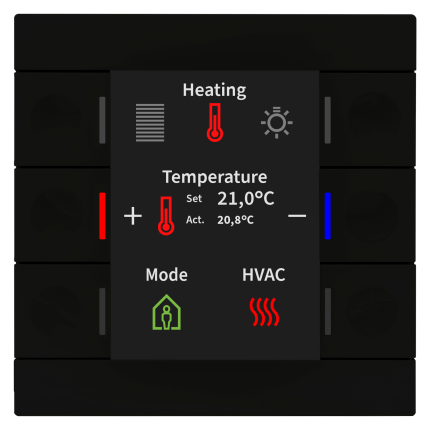 KNX tipkalo Smart 86 z barvnim zaslonom in temperaturnim senzorjem, črna mat površina