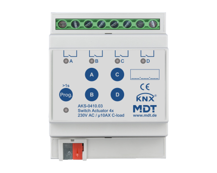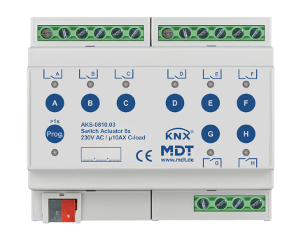 KNX stikalni aktuator, 2-kanalni, 2 SU MDRC, 10 A, 230 V AC, C-obremenitev, standardni, 140 ?F. Standardna izvedba z bistabilnim relejem, maks. tok 10 A, kapacitivna obremenitev maks. 140 µF. Prihranek prostora zaradi optimizirane oblike. Celovita uporaba. Ročni način delovanja z možnostjo blokiranja in LED indikator na kanal. Normalno odprt in normalno zaprt. Povratno sporočilo o stanju za vse kanale (tudi za ročno upravljanje). Časovne funkcije (zakasnitev vklopa/izklopa, funkcija stopniščne razsvetljave). Razširjena logika in funkcija scene na kanal. Razširjene funkcije stanja (obrnjeno, ciklično, med zaklepanjem). Pragovno stikalo (1 bajt/2 bajta/2 bajta s plavajočim tokom). Števec obratovalnih ur. Prednostno/prisilno delovanje z avtomatskim časom sprostitve. 4 mm? priključne sponke. Posamezne L-priključki. Napajanje prek vodila KNX. Hiter prenos aplikacije (podpora za dolge okvirje od ETS 5). 3-letna garancija. PODATKOVNI LIST