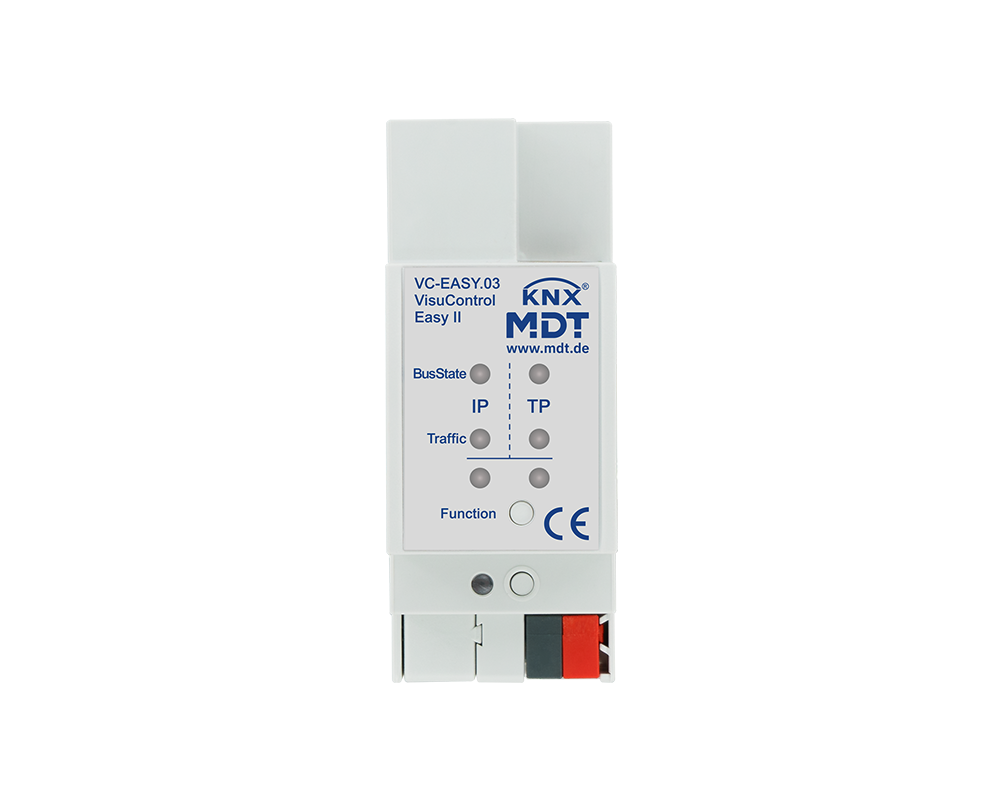 KNX objektni strežnik VisuControl Easy II, 2 SU MDRC. Za vizualizacijo trenutnega stanja stavbe in interaktivno upravljanje funkcij stavbe prek aplikacije za Android in iOS. VisuControl II za KNX je brezplačno na voljo v trgovini Google Play in Apple App Store. Samodejno skaliranje aplikacije jo naredi primerno za pametne telefone in tablične računalnike. Vizualizacija in upravljanje razsvetljave, senčenja, sobne temperature, stanja, scen, multimedije, vremenskih podatkov in še več. Vizualizacija do 200 funkcij. Individualna dodelitev v sobe, cone ali skupine. Ločen objekt stanja. Nadzor barv HSV ali RGB. Grafični uporabniški vmesnik se ustvari samodejno. Do 4 IP kamere na objektni strežnik. Zmogljiv za KNX Secure. Povezava s časovnim stikalom MDT. Snemanje in prikaz podatkov v do 8 diagramih. Integrirana podpora za VPN. IP vmesnik s 4 hkratnimi povezavami (npr. programiranje vodila). Funkcija e-pošte za pošiljanje sporočil in poročil o stanju. Časovni strežnik za pošiljanje datuma in časa na vodilo KNX. Logična funkcija za skupni prikaz stanja. Varen prenos podatkov med objektnim strežnikom in aplikacijo. Aplikacija podpira več kot en objektni strežnik. Enostaven zagon od ETS 5 brez dodatne programske opreme. Napajanje prek vodila KNX, zunanje napajanje ni potrebno. 3-letna garancija. PODATKOVNI LIST